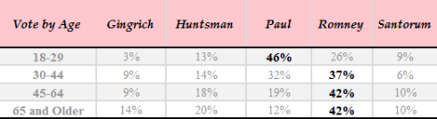 The Angry Elf aka Ron Paul – the man who people think of as their ‘crazy Grandpa’. The oldest and oddest of all the candidates. Ron Paul has been in Congress for over two decades yet has gotten jack & squat accomplished. Sorry but any ass can vote ‘NAY, ‘YEA’ or ‘PRESENT’ – Obama is a perfect example. Paul doesn’t win a majority of ANY voter type unless you are an anarchist. Some of his rabid followers aka Roasted Paulnuts claim HE is the most Conservative of all the candidates yet he has not won the majority of Conservative votes in any of the primaries to date, not even in New Hampshire which is where the Libertarian ‘Free State Project’ set its roots. Just imagine what ‘regular Americans’, who are not involved in politics at all, would think if they saw Paul in a general election debate with Obama? Obama wouldn’t have to spend a dime of his huge campaign coffers to win against Paul.